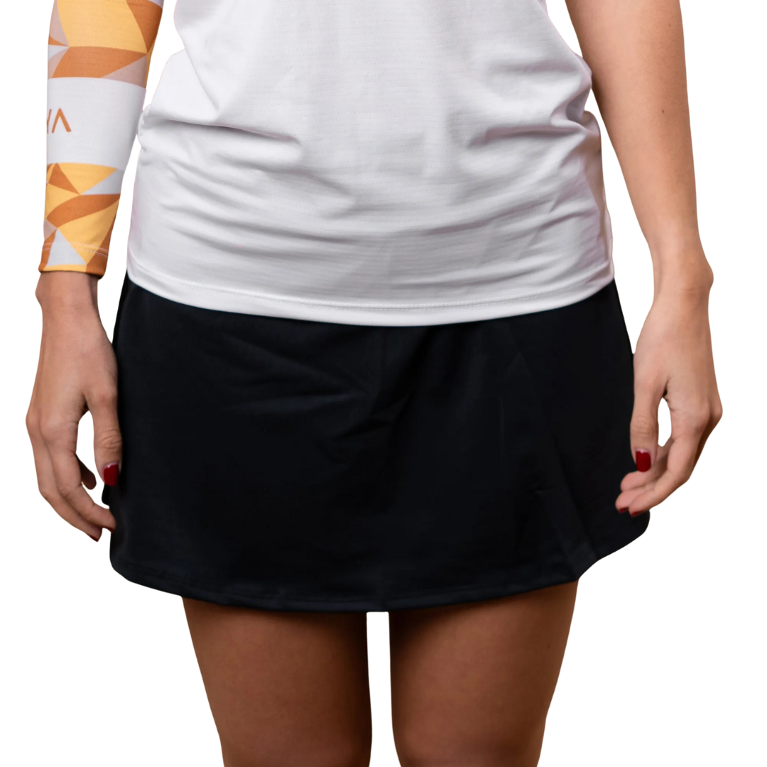 Confeccionado em tecido tecnológico de poliamida com elastano, o Shorts Saia Black traz a tecnologia Smart que permite que o calor do corpo seja dissipado de forma eficiente, mantendo a pele seca mesmo sob o sol intenso. Seu toque gelado e macio proporciona conforto imediato, enquanto a proteção solar UV50+ cuida da sua pele nos treinos ao ar livre.